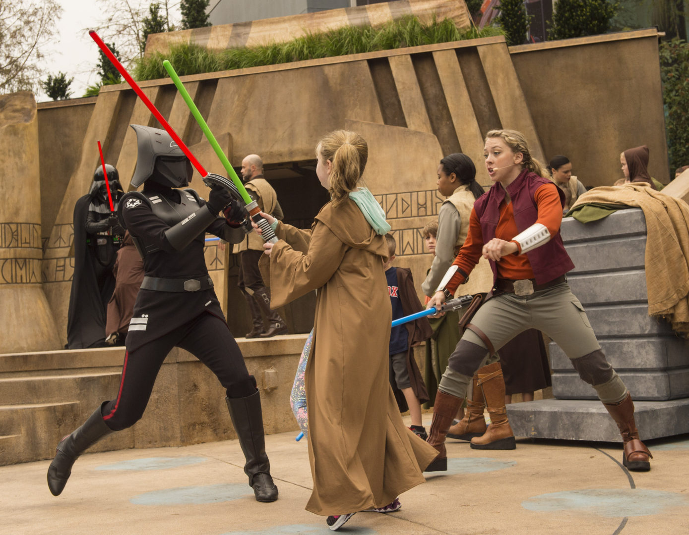 Younglings brave enough to sign up for Jedi Training: Trials of the Temple are guided to the site of a secret and ancient Jedi temple. There, they learn how to use special training lightsabers to face villains such as Darth Vader and the Seventh Sister Inquisitor from the popular Disney XD series Star Wars Rebels, and discover if they have the makings of a true Jedi. (David Roark, photographer)